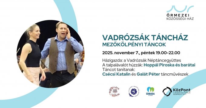 A Vadrózsák novemberi táncházán Mezőkölpényi táncokat tanulhattok és rophattok élő zenekari kísérettel este tízig!
